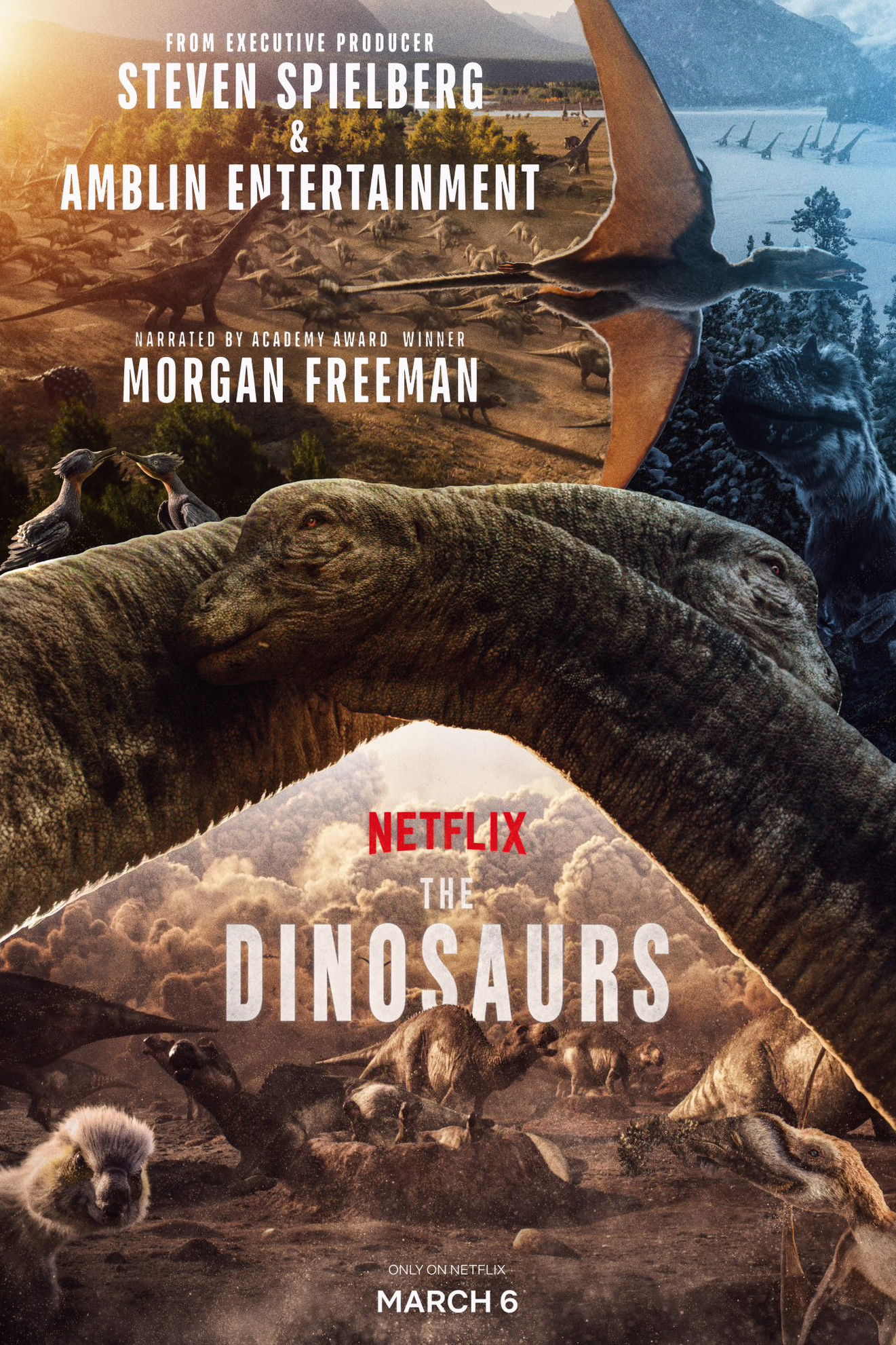 Desde los primeros dinosaurios hasta los últimos, esta gloriosa serie documental examina sus 165 millones de años en la Tierra y las fuerzas que moldearon su evolución.
