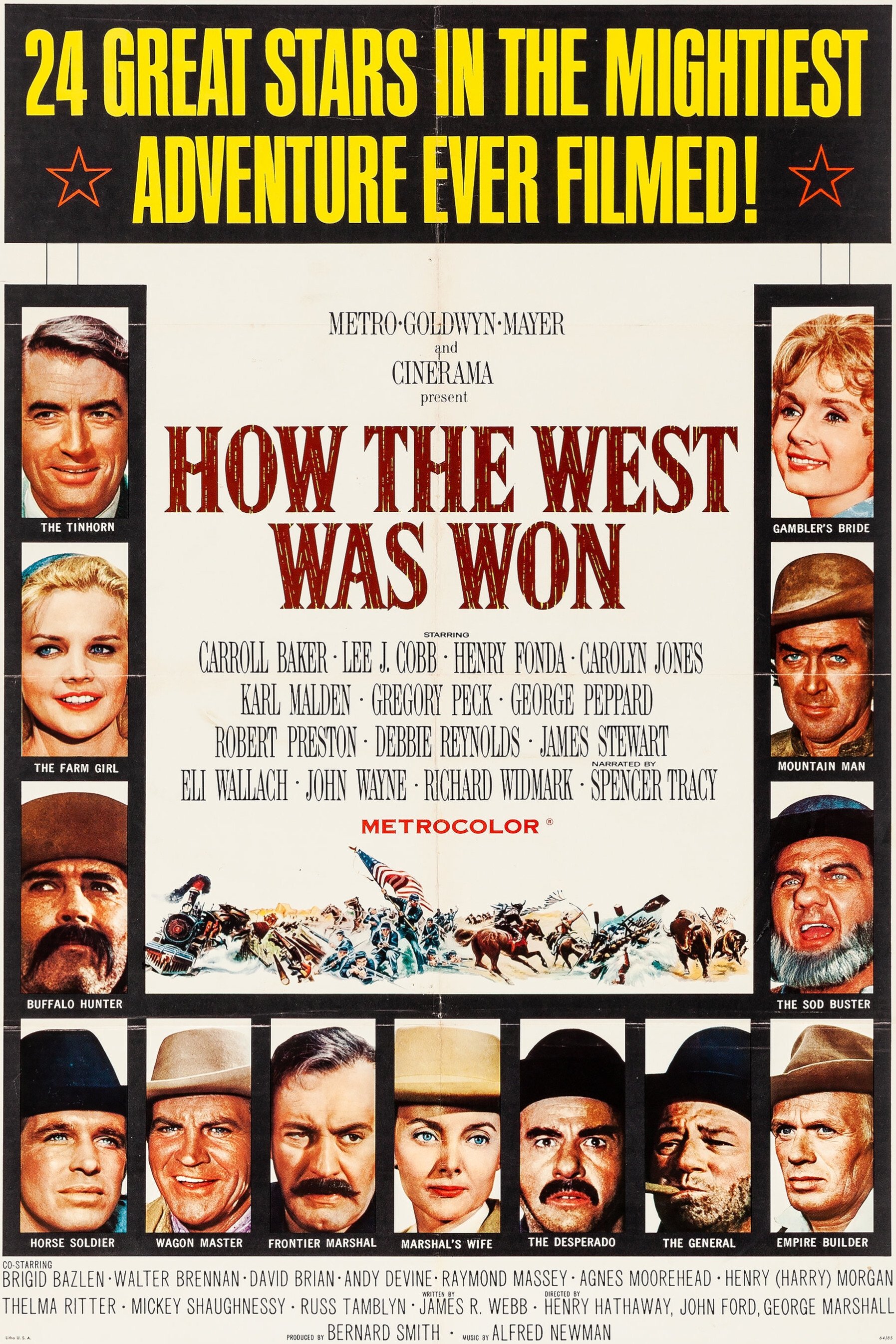 La expansión hacia el Oeste protagonizada por los colonos, la anexión de Texas (1845) y la incorporación de Arizona, Nuevo México y California tras una guerra que se salda con la victoria de los Estados Unidos suponen un avance espectacular de la frontera norteamericana hacia el Pacífico. La película consta de cuatro episodios sobre la colonización del Oeste que tienen lugar entre 1830 y 1890. Los dos primeros y el último, fueron dirigidos por Hathaway, y el tercero, por Marshall, pero incluye también un interludio, dirigido por John Ford, ambientado en la guerra de Secesión, con un diálogo entre los generales nordistas Sherman (Wayne) y Grant (Morgan). Primera película rodada en Cinerama. El narrador es Spencer Tracy.