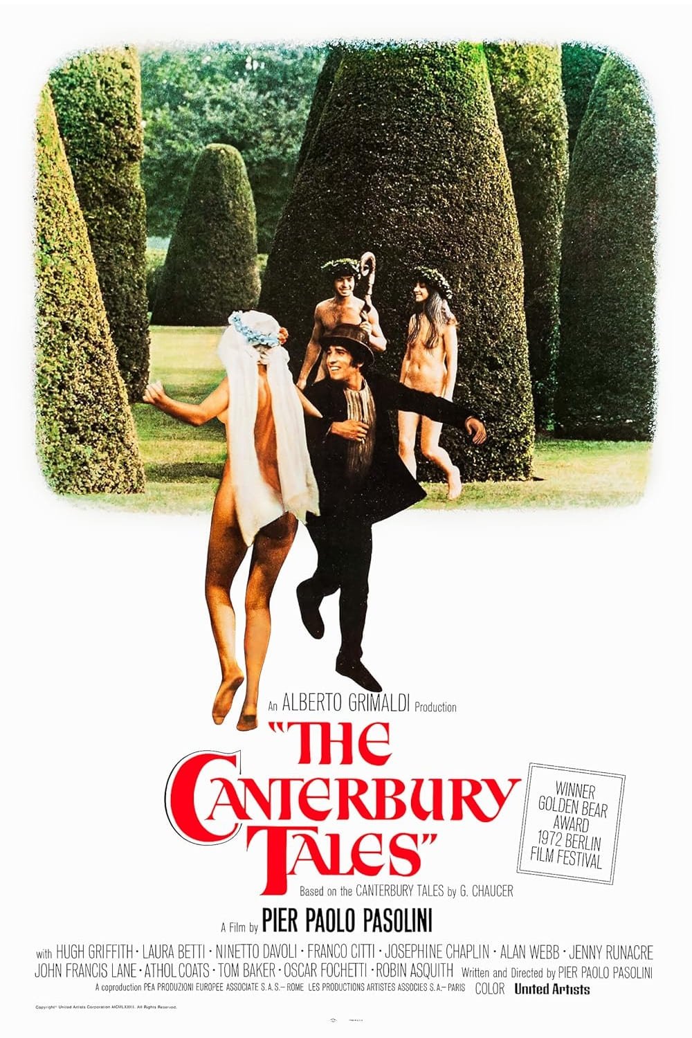 Un grupo de peregrinos que van a Canterbury se entretienen narrando cuentos: el joven Nicola conquista a la mujer de un rico leñador aprovechando su superstición; dos estudiantes se vengan de un molinero que roba harina a sus clientes; el inocente Perkin es expulsado de su pueblo y acaba arruinado; una insaciable viuda de Bath destruye con su fogosidad a sus maridos para heredar sus bienes; un rico y anciano solterón decide casarse con la jovencísima Maggio, que lo traiciona con un hermoso joven. Mientras tanto, un escribiente toma nota de los sucesos, analizando con humor e ironía las debilidades humanas.